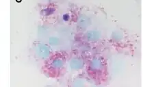 Rickettsia prowazekii is a species of gram-negative, alphaproteobacteria, obligate intracellular parasitic, aerobic bacillus bacteria that is the etiologic agent of epidemic typhus, transmitted in the feces of lice. In North America, the main reservoir for R. prowazekii is the flying squirrel. R. prowazekii is often surrounded by a protein microcapsular layer and slime layer; the natural life cycle of the bacterium generally involves a vertebrate and an invertebrate host, usually an arthropod, typically the human body louse. A form of R. prowazekii that exists in the feces of arthropods remains stably infective for months. R. prowazekii also appears to be the closest free-living relative of mitochondria, based on genome sequencing.[1]