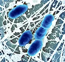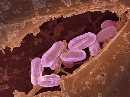 | Scanning electron micrograph of Rickettsia typhi | |