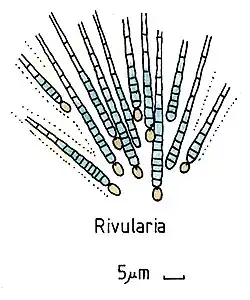 - ↑ Guiry, Michael D. (2014). Rivularia C.Agardh ex Bornet & Flahault, 1886. In: Guiry, M.D. & Guiry, G.M. (2014). AlgaeBase. World-wide electronic publication, National University of Ireland, Galway (taxonomic information republished from AlgaeBase with permission of M.D. Guiry). Accessed through: World Register of Marine Species at http://www.marinespecies.org/aphia.php?p=taxdetails&id=146623 on 2014-12-09