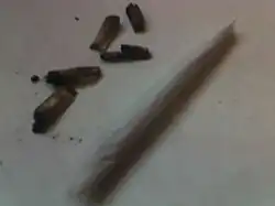 Small metal clips to facilitate the smoking of a "roach" are called roach clips.[1] Roach clips cover a wide variety of paraphernalia including alligator clips, forceps, hemostats, needle nose pliers, ceramic pieces with holes through them, and tweezers.[2]