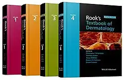 {{cite book}}: CS1 maint: multiple names: authors list (link) - ↑ Burns, Tony; Breathnach, Stephen; Cox, Neil; Griffiths, Christopher, eds. (2010). Rook's Textbook of Dermatology. Wiley. doi:10.1002/9781444317633. ISBN 978-1-4051-6169-5.