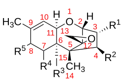 - 1 2 McCormick, Susan P.; Stanley, April M.; Stover, Nicholas A.; Alexander, Nancy J. (2011-07-01). "Trichothecenes: From Simple to Complex Mycotoxins". Toxins. 3 (7): 802–814. doi:10.3390/toxins3070802. ISSN 2072-6651. PMC 3202860. PMID 22069741.
