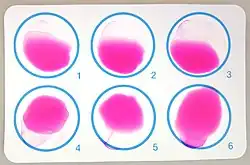 Rose bengal has been used for 50 years to diagnose liver and eye cancer. Rose bengal dye is mixed with the homogenate of Brucella and pH of the solution is maintained at 3.8, and this dye is used to diagnose Brucellosis by agglutinating the suspected serum. Rose bengal is slightly irritating and toxic to the eye.[6] It has also been used as an insecticide.[16][17]