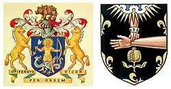 ![]() Arms of the Society of Apothecaries (left) and the Royal College of Physicians (right) | |