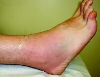 Ross River virus can cause multiple symptoms in someone who is infected, the most common being arthritis or joint pain. Other symptoms include a rash on the limbs of the body, which often occurs roughly 10 days after arthritis begins. Lymph nodes may enlarge, most commonly in the arm pits or groin region, and rarely a feeling of 'pins and needles' in the persons hands and feet, but only occurs in a small number of people.[18] The virus also causes moderate symptoms in horses.[19]