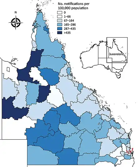 - ↑ 22.0 22.1 22.2 Harley, David; Ritchie, Scott; Bain, Chris; Sleigh, Adrian C (2005). "Risks for Ross River virus disease in tropical Australia". International Journal of Epidemiology. 34 (3): 548–555. doi:10.1093/ije/dyh411. PMID 15659466.
