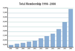 The college gained more than 7,000 Associates in Training (AiTs) in 2008, when membership was made compulsory for GP trainees.[9] The membership total has effectively doubled between 1998 and 2008.[9]