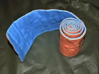 The device is often found in first aid kits, emergency medical technician "jump kits," ambulances, and other similar settings. Generally supplied in a roll or as a flat strip up to 910 millimetres (36 in) long and 108 millimetres (4.25 in) wide, it can be unrolled or unfolded and formed to the shape of the injured person's body. Once folded into a curve, it becomes quite rigid and capable of immobilizing injured limbs and bones, including the leg, forearm, and humerus. Folded properly, it can also be used to stabilize the cervical spine. It can be easily cut with any scissors or shears, to make smaller devices such as finger splints.[2][3][4]