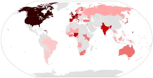 | World (71 countries) | Total: 7,129 | Total as of 27 August 2021 |