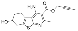 SB-205384 is a GABAA positive allosteric modulator, which binds preferentially to α3, α5, and α6 subunit containing subtypes.[1][2] It has a novel mechanism of action, prolonging the duration of GABA-mediated chloride flux but without increasing the intensity of the response, and this may give it an unusual pharmacological profile,[3] with tests showing that it alters the firing of some populations of neurons while leaving others unaffected.[4] Animal studies have shown it to produce both anxiolytic and anti-aggressive effects, but with little sedation or other behavioural changes.[5][6]