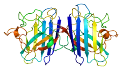 Superoxide dismutase [Cu-Zn] also known as superoxide dismutase 1 or hSod1 is an enzyme that in humans is encoded by the SOD1 gene, located on chromosome 21. SOD1 is one of three human superoxide dismutases.[5][6] It is implicated in apoptosis, familial amyotrophic lateral sclerosis and Parkinson's disease.[6][7]