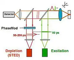 - 1 2 Müller, T.; Schumann, C.; Kraegeloh, A. (2012). "STED Microscopy and its Applications: New Insights into Cellular Processes on the Nanoscale". ChemPhysChem. 13 (8): 1986–2000. doi:10.1002/cphc.201100986. PMID 22374829.