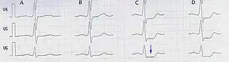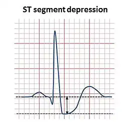 ST depression refers to a finding on an electrocardiogram,[1][2] wherein the trace in the ST segment is abnormally low below the baseline.
