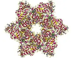 ![]() SV40 T helicase domain hexamer, Simian virus. | |||||||