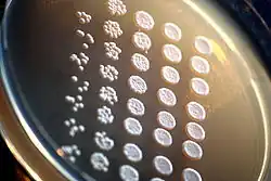 Yeast colonies on an agar plate.