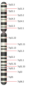 Linkage analysis and chromosomal rearrangement revealed the cause of SCS to be mutations in the TWIST gene (twist transcription factor gene) located on chromosome 7p21. The TWIST gene encodes a basic helix-loop-helix (b-HLH) transcription factor that controls head mesenchyme development as the cranial tube forms. More than 35 varying TWIST mutations involving the b-HLH domain of the protein have been identified in people with SCS. The mutations include missense, nonsense, and frameshift deletion/insertion mutations that either shorten or disrupt the b-HLH domain. Most individuals with SCS have a single large deletion in the region 7p21, which contains the region that codes for the TWIST gene.[6]