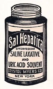 Sal Hepatica is a mineral salt laxative that was produced and marketed by Bristol-Myers from its inception in 1887, becoming its first nationally recognized product in 1903, until 1958. When dissolved in water, it was said to reproduce the taste and effect of the natural mineral waters of Bohemia.[1]