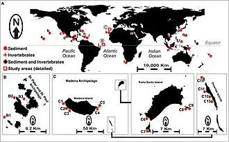 - ↑ Jensen PR, Mafnas C (November 2006). "Biogeography of the marine actinomycete Salinispora". Environmental Microbiology. 8 (11): 1881–1888. doi:10.1111/j.1462-2920.2006.01093.x. PMID 17014488.