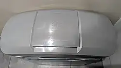 In New York, USA, in 1952 George S. James patented a 'sanitary waste disposal bin'.[1] In 1955, Cannon Hygiene (Citron Hygiene) were the first waste management company to supply sanitary bins, especially as the number of women in the workforce was growing in post-war Britain.[1][3] Original Cannon bins were blue in colour, and in 2018 could still be found in some public bathrooms in Scotland.[2] Other companies joined the industry, with PHS and Rentokil offering a 'sanitary unit exchange', where new bins were supplied and the used ones removed, emptied, washed and returned to another location.[1] Anecdotally, PHS became involved in the industry due to the suggestion made by one of the company secretaries to its owners Alfred and George Tack.[1]