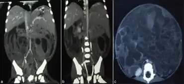 | a-c)Contrast-enhanced computed tomography of abdomen | |