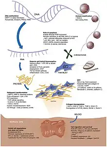 - ↑ Roten SV1, Bhat S, Bhawan J. (February 1996). "Elastic fibers in scar tissue". J Cutan Pathol. 23 (1): 37–42. doi:10.1111/j.1600-0560.1996.tb00775.x. PMID 8720985. S2CID 37823718.