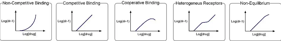 The Schild regression also can reveal if there are more than one type of receptor and it can show if the experiment was done wrong as the system has not reached equilibrium.