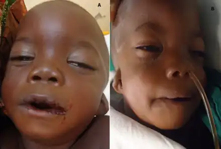 Schinzel–Giedion syndrome (SGS) is a congenital neurodegenerative terminal syndrome. It was first described in 1978 by Albert Schinzel (1944–) and Andreas Giedion (1925–)[2][3] as a syndrome with severe midface retraction, skull anomalies, renal anomalies (hydronephrosis) and other anomalies. Babies born with Schinzel–Giedion syndrome have severe mental retardation, growth retardation (unless fed through a feeding tube) and global developmental delay.