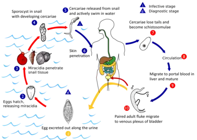 - ↑ Berry, A.; Iriart, X.; Fillaux, J.; Magnaval, J.-F. (2017). "Schistosomose urogénitale et cancer [Urinary schistosomiasis and cancer]". Bulletin de la Société de Pathologie Exotique. 110 (1): 68–75. doi:10.1007/s13149-017-0547-4. PMID 28185084. S2CID 195078476.