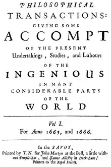 - ↑ "History of Philosophical Transactions – The Secret History of the Scientific Journal". University of St Andrews. Archived from the original on 2019-05-17. Retrieved 2023-05-01. Archived 2019-05-17 at the Wayback Machine