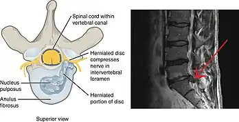 - ↑ 2.00 2.01 2.02 2.03 2.04 2.05 2.06 2.07 2.08 2.09 2.10 2.11 Institute for Quality and Efficiency in Health Care (October 9, 2014). "Slipped disk: Overview". Archived from the original on 8 September 2017. Retrieved 2 July 2015.