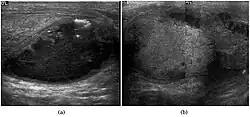 - ↑ Kühn A, Scortegagna E, Nowitzki K, Kim Y (July 2016). "Ultrasonography of the scrotum in adults". Ultrasonography. 35 (3): 180–197. doi:10.14366/usg.15075. PMC 4939719. PMID 26983766.