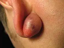 | Epidermal cyst on the neck, inflamed | |