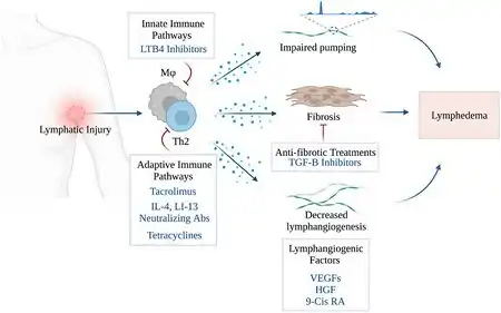 - ↑ Brown, Stav; Dayan, Joseph H.; Coriddi, Michelle; Campbell, Adana; Kuonqui, Kevin; Shin, Jinyeon; Park, Hyeung Ju; Mehrara, Babak J.; Kataru, Raghu P. (25 January 2022). "Pharmacological Treatment of Secondary Lymphedema". Frontiers in Pharmacology. 13. doi:10.3389/fphar.2022.828513. ISSN 1663-9812. Retrieved 12 August 2024.