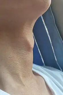- Enlargement of the larynx (Adam's apple) and deepening of the voice.[1][24]