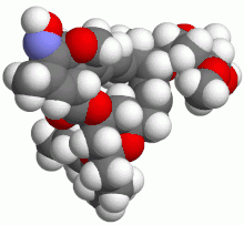 Selamectin, sold under the brand name Revolution, among others, is a topical parasiticide and anthelminthic used on dogs and cats.[2] It treats and prevents infections of heartworms, fleas, ear mites, sarcoptic mange (scabies), and certain types of ticks in dogs, and prevents heartworms, fleas, ear mites, hookworms, and roundworms in cats. It is structurally related to ivermectin and milbemycin. Selamectin is not approved for human use.