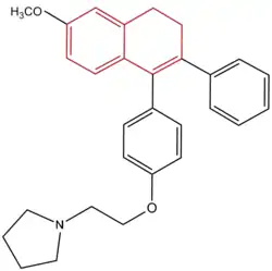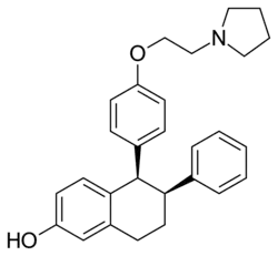 - ↑ Gauthier S, Mailhot J, Labrie F (May 1996). "New Highly Stereoselective Synthesis of (Z)-4-Hydroxytamoxifen and (Z)-4-Hydroxytoremifene via McMurry Reaction". The Journal of Organic Chemistry. 61 (11): 3890–3893. doi:10.1021/jo952279l. PMID 11667248.
