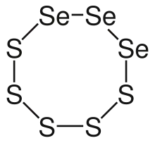 - ↑ Pekonen, Pentti.; Hiltunen, Yrjō; Laitinen, Risto S.; Pakkanen, Tapani A. (1991). "Chalcogen ring interconversion pathways. 77Se NMR spectroscopic study of the decomposition of 1,2,3,4,5-Se5S2 to 1,2,3,4,5,6-Se6S2 and 1,2,3,4-Se4S2". Inorganic Chemistry. 30 (19): 3679. doi:10.1021/ic00019a022.