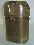 The key feature of a respirator is a reactive catalyst bed, of a material like Hopcalite.[2] This is a mixture of copper and manganese oxides, which acts as an oxidiser. To keep the catalyst functioning, the respirator has pre-filters of a dust filter and a moisture trap, as either contaminant would reduce its effectiveness. For storage, the respirator must be kept sealed within its case to avoid the catalyst activating and becoming consumed. The catalyst reaction is exothermic and so the respirator and its gas gets hot in use. The case is metal, to conduct some of this heat away.