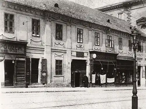 By that time the old house has fallen into a state of disrepair, and its occupants were extremely poor.[14] The building was vacated in 1939 but two years later it was inhabited again by destitute families who lived there in unhealthy conditions. The fate of the house remained uncertain for years because some argued that it should be restored due to its historical connection with Semmelweis while others claimed that it has deteriorated beyond repair.[15] Although remaining a crowded slum, it was finally listed as a protected monument in 1942 by ministerial decree.[16] The municipality intended to create a museum and a kindergarten in the building after the war.[17]