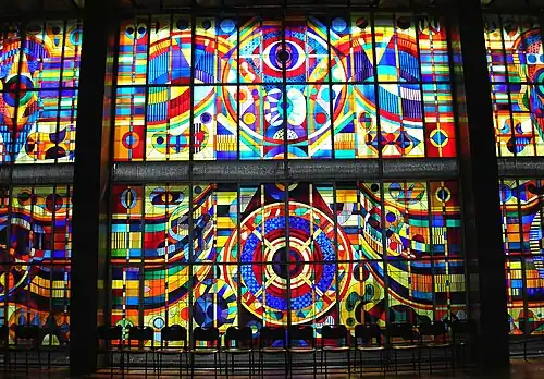 The university's Theoretical Building at Nagyvárad tér is one of the tallest high rise in Hungary. It houses several research institutions, a student centre, the office of the Students’ Union, auditoriums, conference halls and the country's largest stained glass installations.[24]