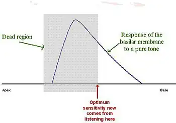 19. 19.0 19.1 Summers V, Molis MR, Müsch H, Walden BE, Surr RK, Cord MT (April 2003). "Identifying dead regions in the cochlea: psychophysical tuning curves and tone detection in threshold-equalizing noise". Ear and Hearing. 24 (2): 133–42. doi:10.1097/01.AUD.0000058148.27540.D9. PMID 12677110. S2CID 35548604.