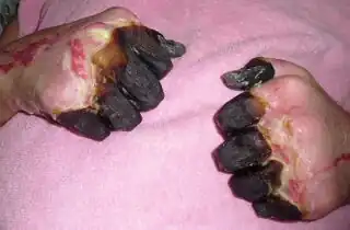 - Gangrene in extremities, mostly fingers, nose, and toes