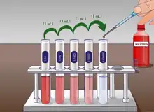 Serial dilution is one of the core foundational practices of homeopathy, with "succussion", or shaking, occurring between each dilution. In homeopathy, serial dilutions (called potentisation) are often taken so far that by the time the last dilution is completed, no molecules of the original substance are likely to remain.[3][4]