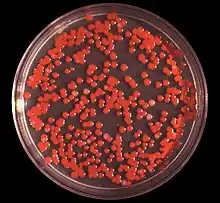 Serratia marcescens on an agar plate