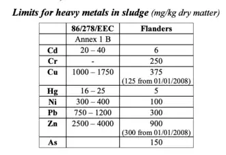 - 1 2 3 " Disposal and Recycling Routes for Sewage Sludge" Part 2 - Regulatory report October 2001. pg 1-65. Written by the EU Directive General for the Environment under the European commission. https://ec.europa.eu/environment/archives/waste/sludge/pdf/sludge_disposal2.pdf