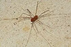 Aquatic arthropods may breed by external fertilization, as for example horseshoe crabs do,[33] or by internal fertilization, where the ova remain in the female's body and the sperm must somehow be inserted. All known terrestrial arthropods use internal fertilization. Opiliones (harvestmen), millipedes, and some crustaceans use modified appendages such as gonopods or penises to transfer the sperm directly to the female. However, most male terrestrial arthropods produce spermatophores, waterproof packets of sperm, which the females take into their bodies. A few such species rely on females to find spermatophores that have already been deposited on the ground, but in most cases males only deposit spermatophores when complex courtship rituals look likely to be successful.[29]