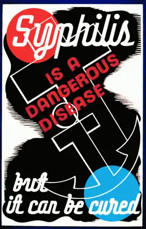 | "Syphilis is a dangerous disease, but it can be cured." Poster encouraging treatment. Published between 1936 and 1938. | |