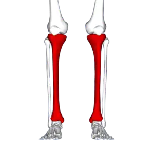 Red area represents the tibia. Pain is generally in the inner and lower 2/3rds of tibia.