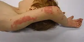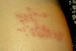 - ↑ Tsai SY, Chen HJ, Lio CF, et al. (2017-08-22). "Increased risk of herpes zoster in patients with psoriasis: A population-based retrospective cohort study". PLOS ONE. 12 (8): e0179447. Bibcode:2017PLoSO..1279447T. doi:10.1371/journal.pone.0179447. ISSN 1932-6203. PMC 5567491. PMID 28829784.