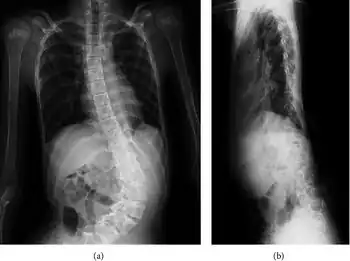 a) X-ray—anterior-posterior view of levoscoliosis b) X-ray—lateral view.